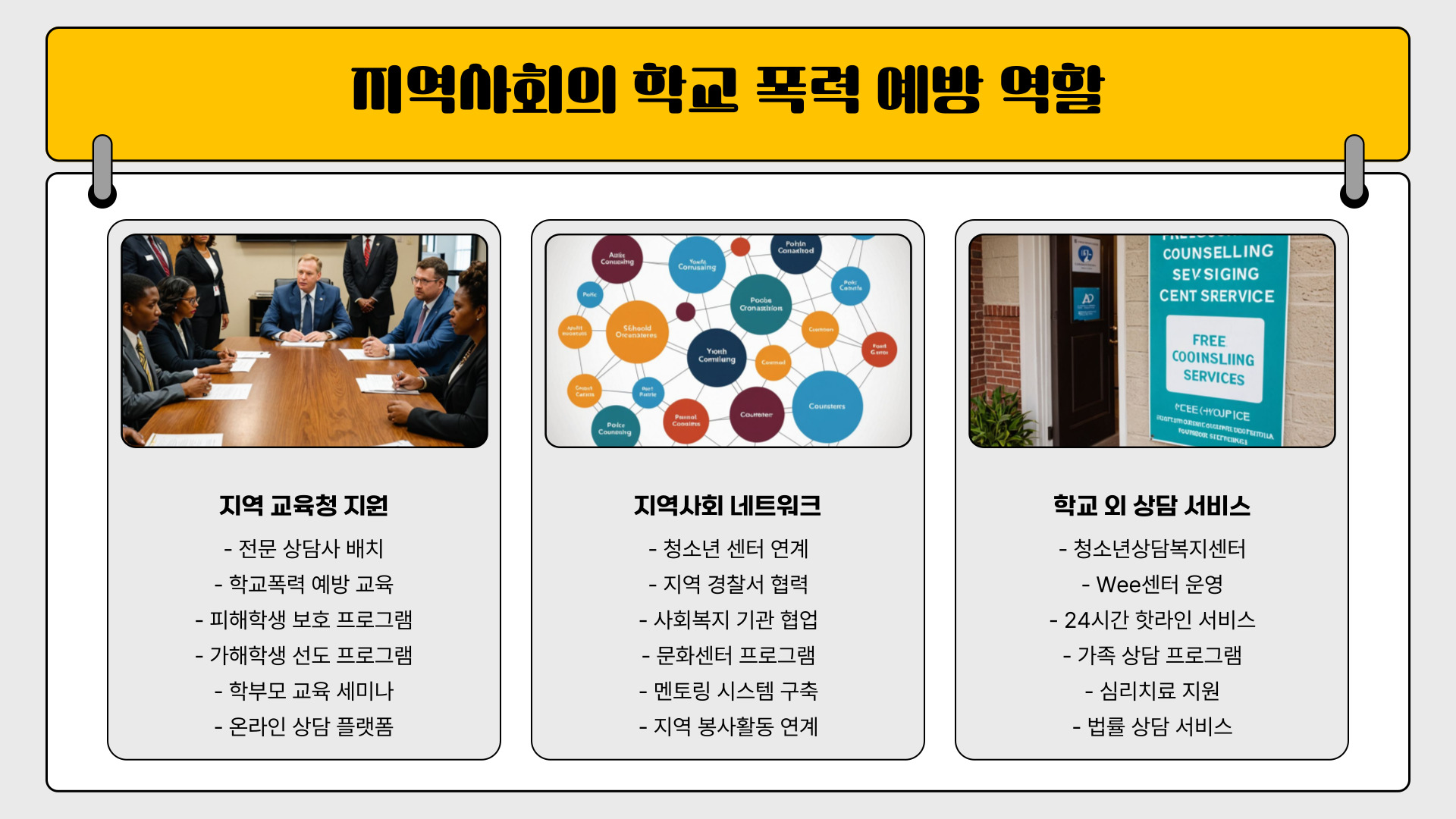 학교 폭력은 부모와 학교, 지역사회가 함께 노력해야 해결할 수 있는 문제입니다.